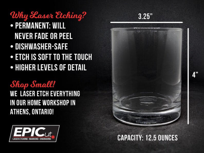 Personalized Whiskey / Scotch / Cocktail Glass, custom laser etched with your logo or design! This listing is for our 12.5 oz large glass size - perfect size for a double old-fashioned.