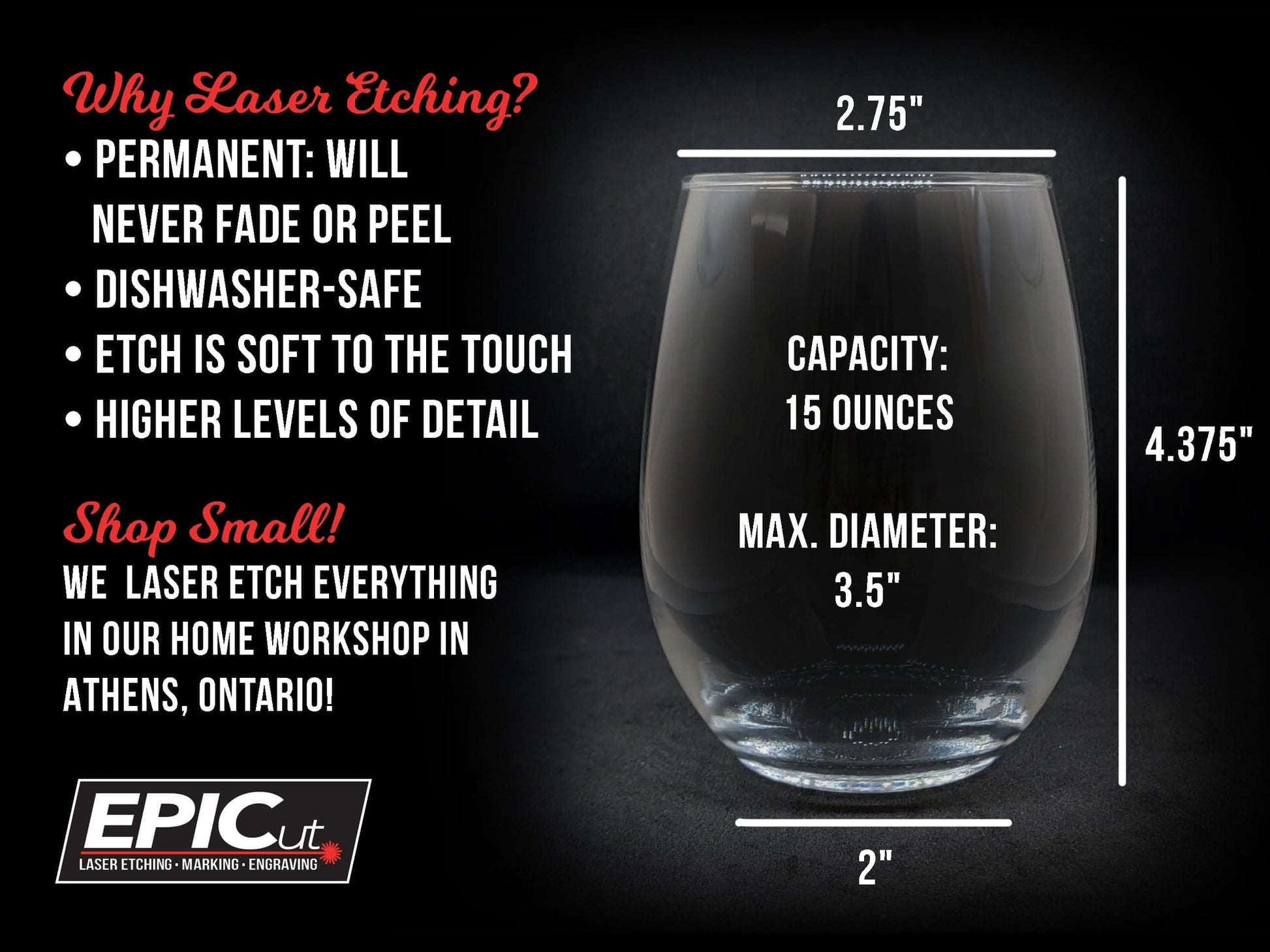 15oz Personalized Stemless Wine Glass, custom laser etched with your design! Perfect for weddings, corporate events, adding a special touch to celebrations, or any other occasion! Custom engraved glassware is also a great opportunity to brand your restaurant or cafe.